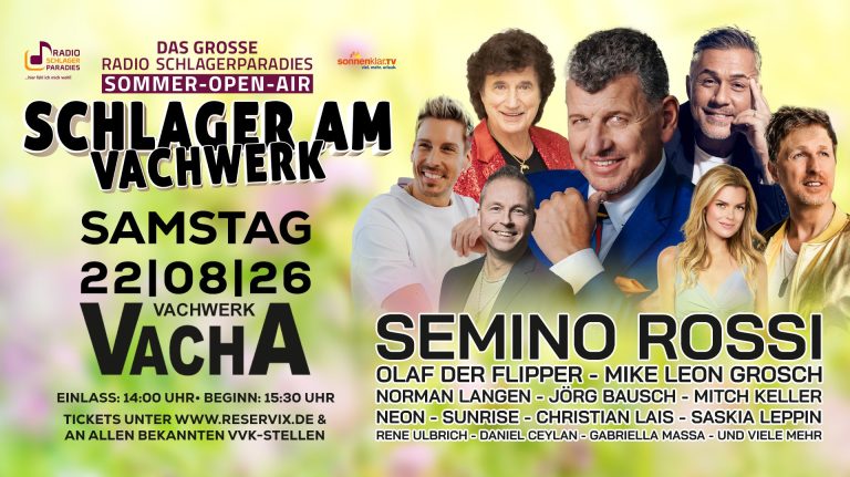 „Schlager am Vachwerk 2026“ – Das große Radio Schlagerparadies Sommer Open Air powered by sonnenklar.TV